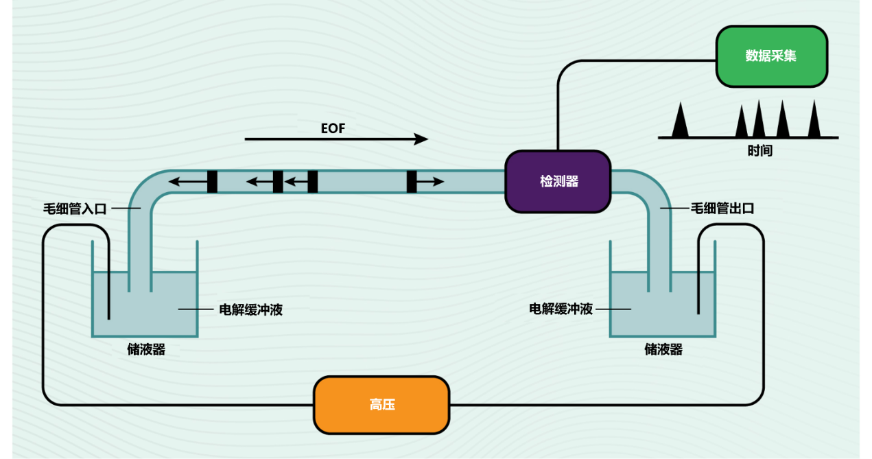 毛细管电泳(Capillary Electrophoresis, CE),亦称为高效毛细管电泳(High- Performance Capillary Electrophoresis, HPCE),是近年来快速发展的一种分析技术。它使用狭窄的毛细管根据带电分子(离子)在电场影响下向电极的迁移来分离带电分子(离子)。它是一种高分辨率、快速的方法,用于分析小分子、DNA 和蛋白质。CE 的重要性在于它能够提供高度准确和可重现的分离,即使是复杂的混合物,使其成为生物化学、制药和法医学等各个领域的宝贵工具。